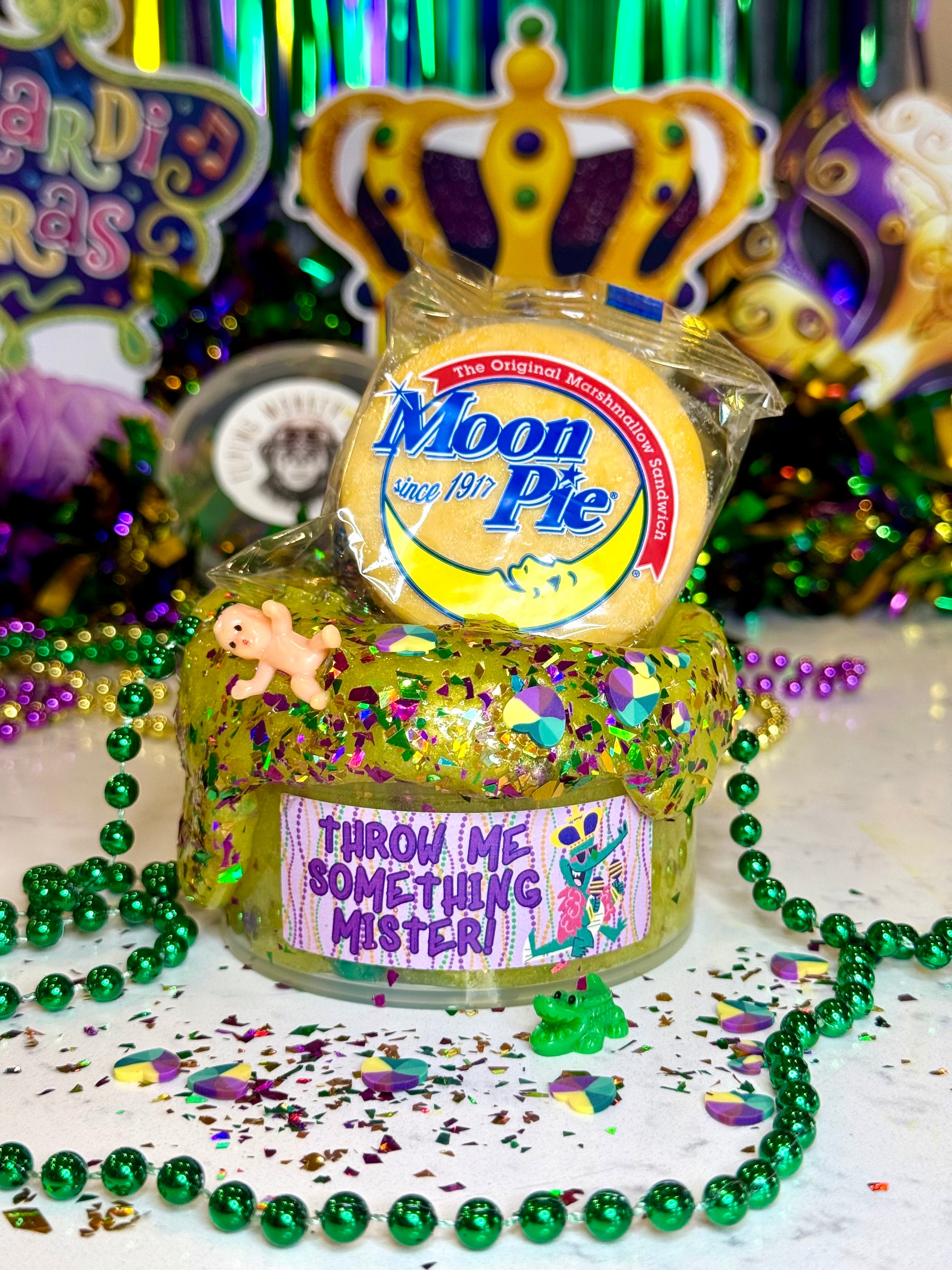 From the beads to Moon Pies to all the treasures flying through the air, this slime captures the magic of standing on the parade sidelines, hands up, yelling “Throw me something, mister!”